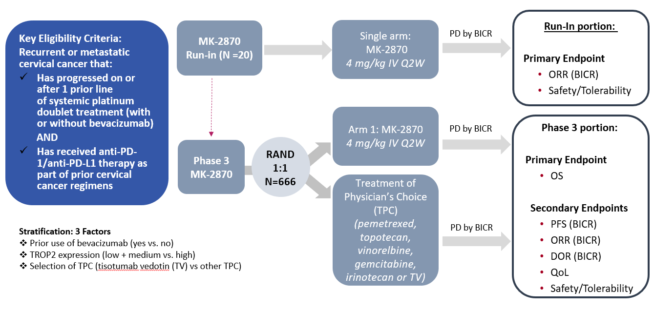"A Phase 3 Randomized, Active-controlled, Open-label, Multicenter Study to Compare the Efficacy and Safety of MK-2870 Monotherapy Versus Treatment of Physician’s Choice as Second-line Treatment for Participants with Recurrent or Metastatic Cervical Cancer."